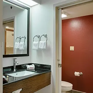 The rooms at the Red Roof Inn New Orleans Airport provide guests with a flat-screen TV with satellite channels, as well as comforts such as an ironing set and climate control. They include a microwave oven, coffee & tea makers, and a refrigerator. Featuring a separate toilet, a shower, and a sink, the bathrooms also have hairdryers and towels.